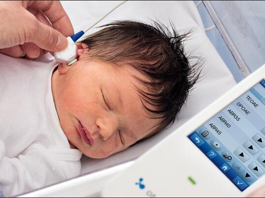 亲爱的宝妈、宝爸们:听力障碍是新生儿最常见的出生缺陷,国外数据显示新生儿中双侧听力损失的发生率为1‰~3‰,其中在新生儿重症监护病房中重度听力损失的发生率可高达2%~4%。国内数据显示,在每年2000万新生儿中,新增的听力障碍患儿约为2.3万。新生儿听力筛查目的是早发现、早诊断、早干预。尽早筛查并进一步诊断出存在永久性听力损失的患儿,针对此类患儿及时给予正确的助听干预,可以有效促进患儿听觉语言和认知水平的发育,减少与听力正常儿童的差距。新生儿听力障碍的原因包括:1、遗传因素。遗传性耳聋占所有耳聋病人的50%以上,并